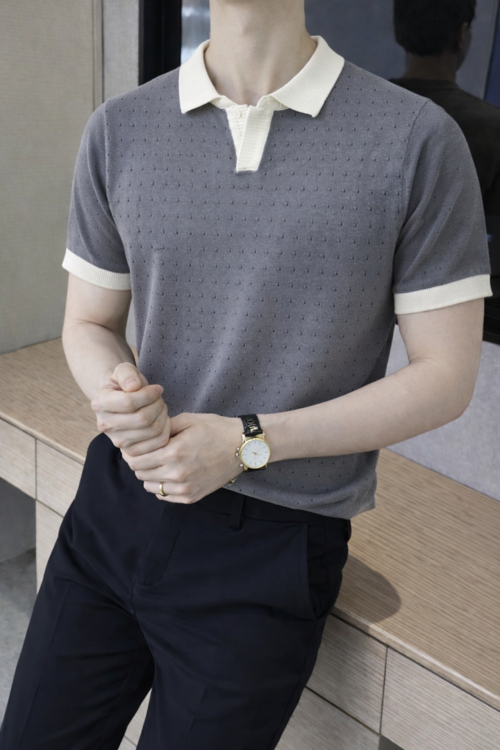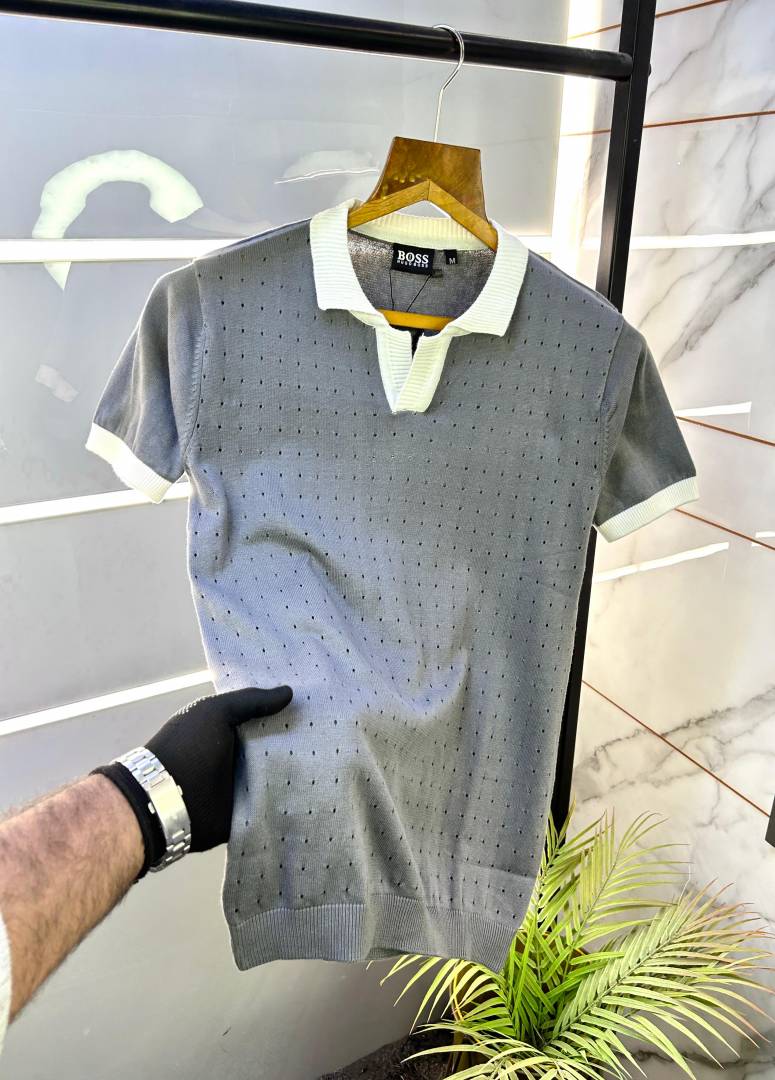 Boss Knitted Polo Grey Super Premium Collar Neck T-shirt F2754-GY