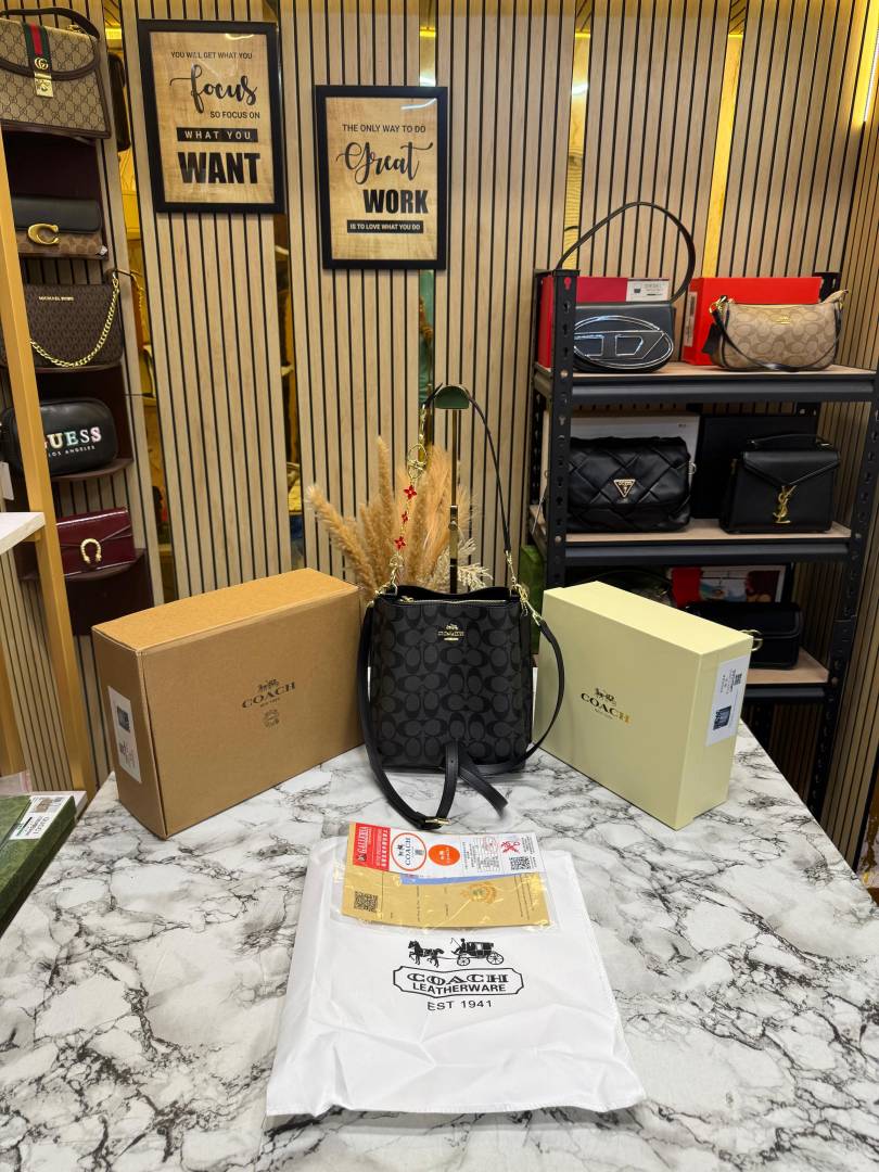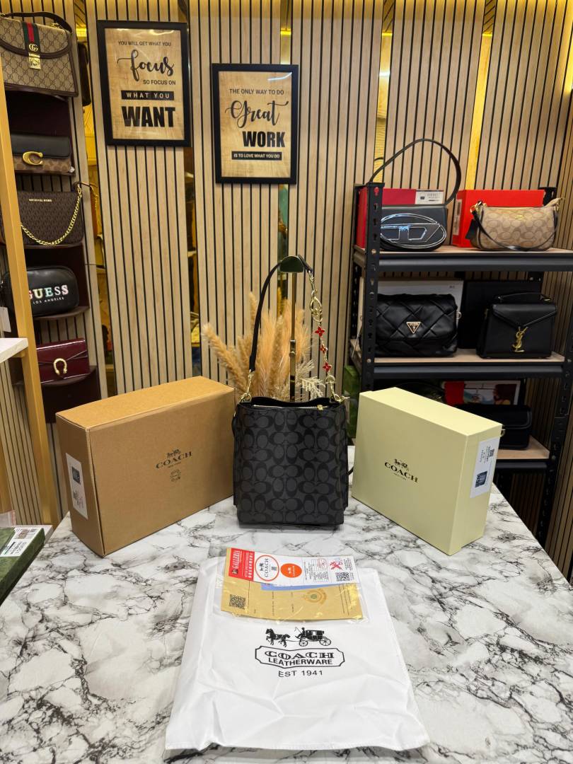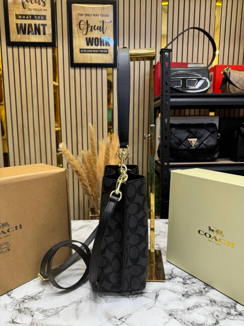• Coac_h Mollie Premium Quality Bucket Bag In Signature Canvas With Og Double Box Dust Bag (Black) (F-62699)