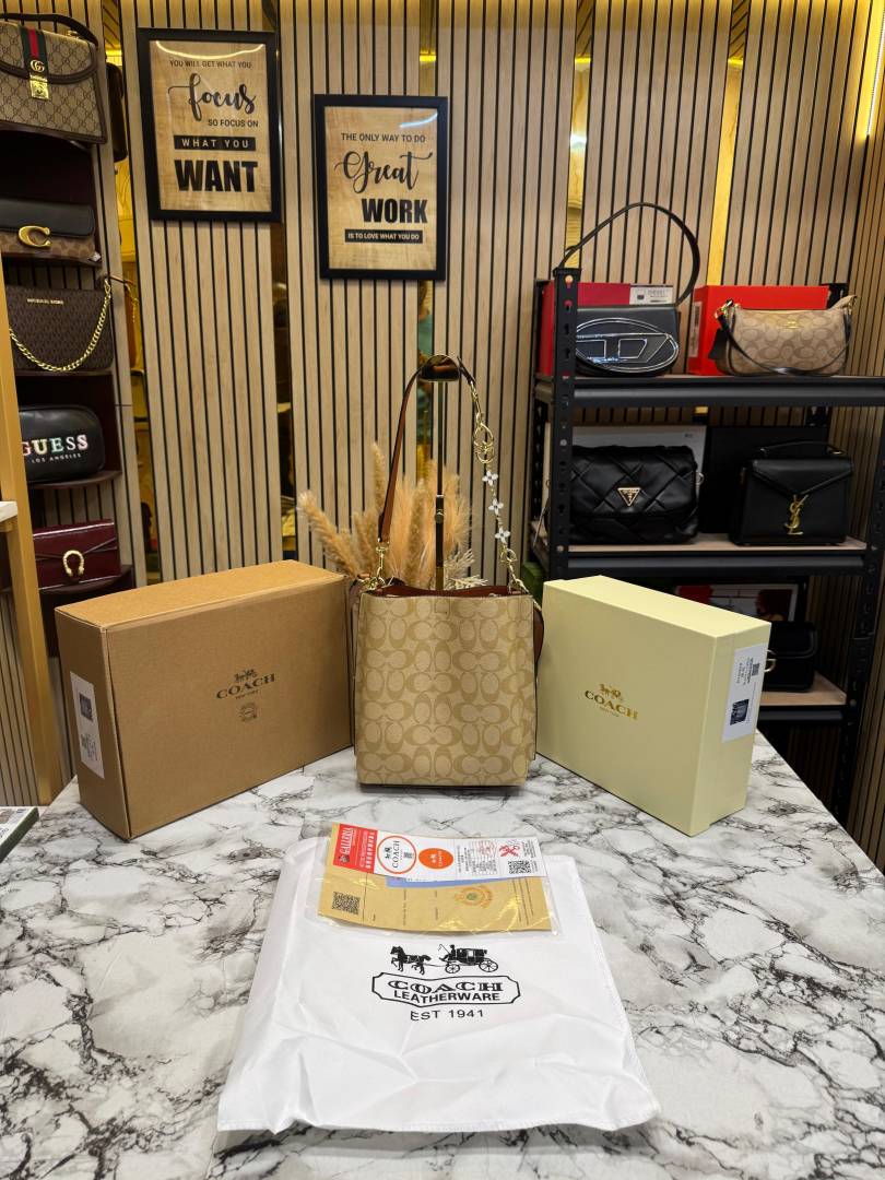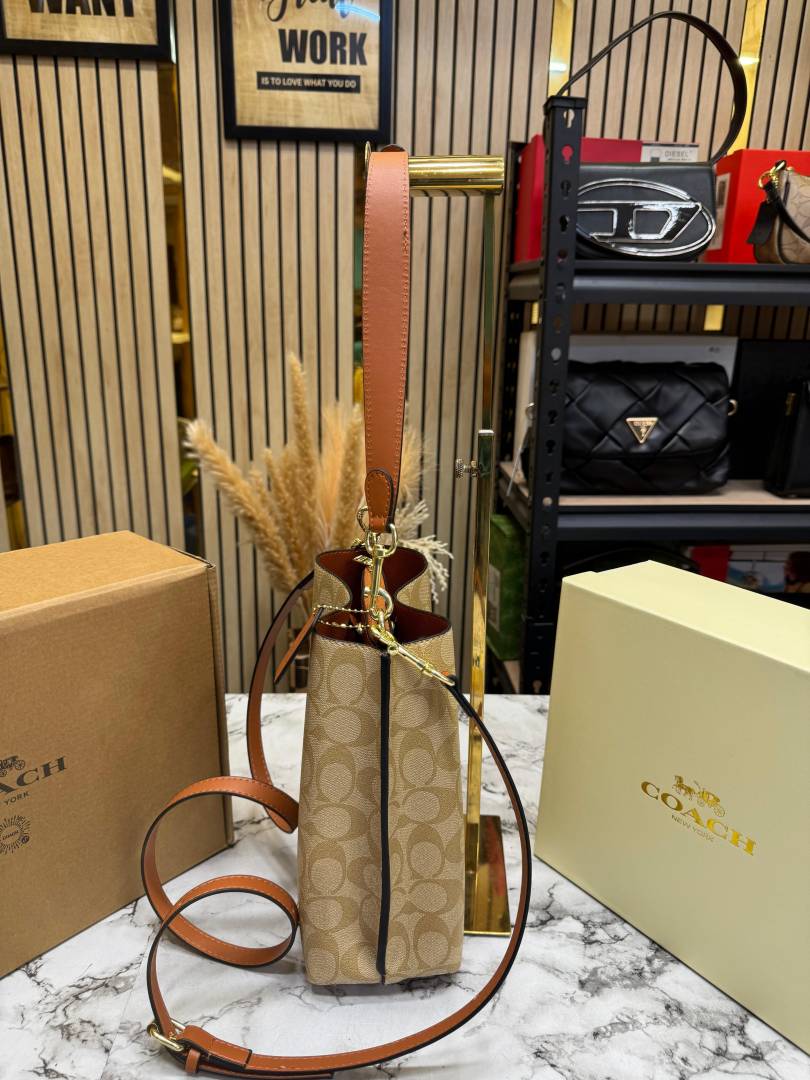 • Coac_h Mollie Premium Quality Bucket Bag In Signature Canvas With Og Double Box Dust Bag (Apricot) (F-62699)