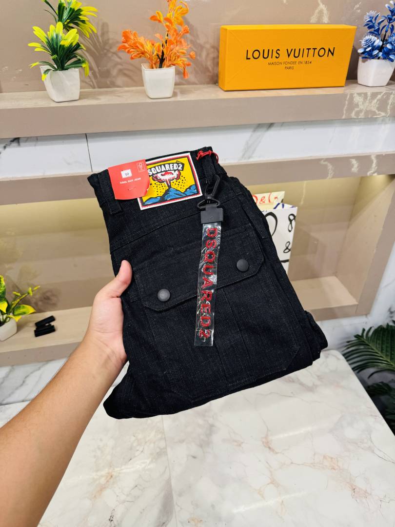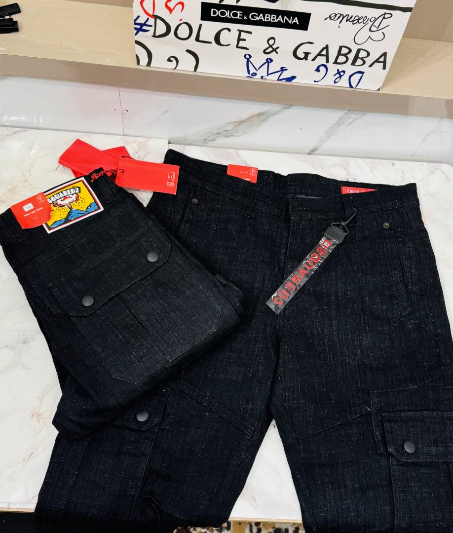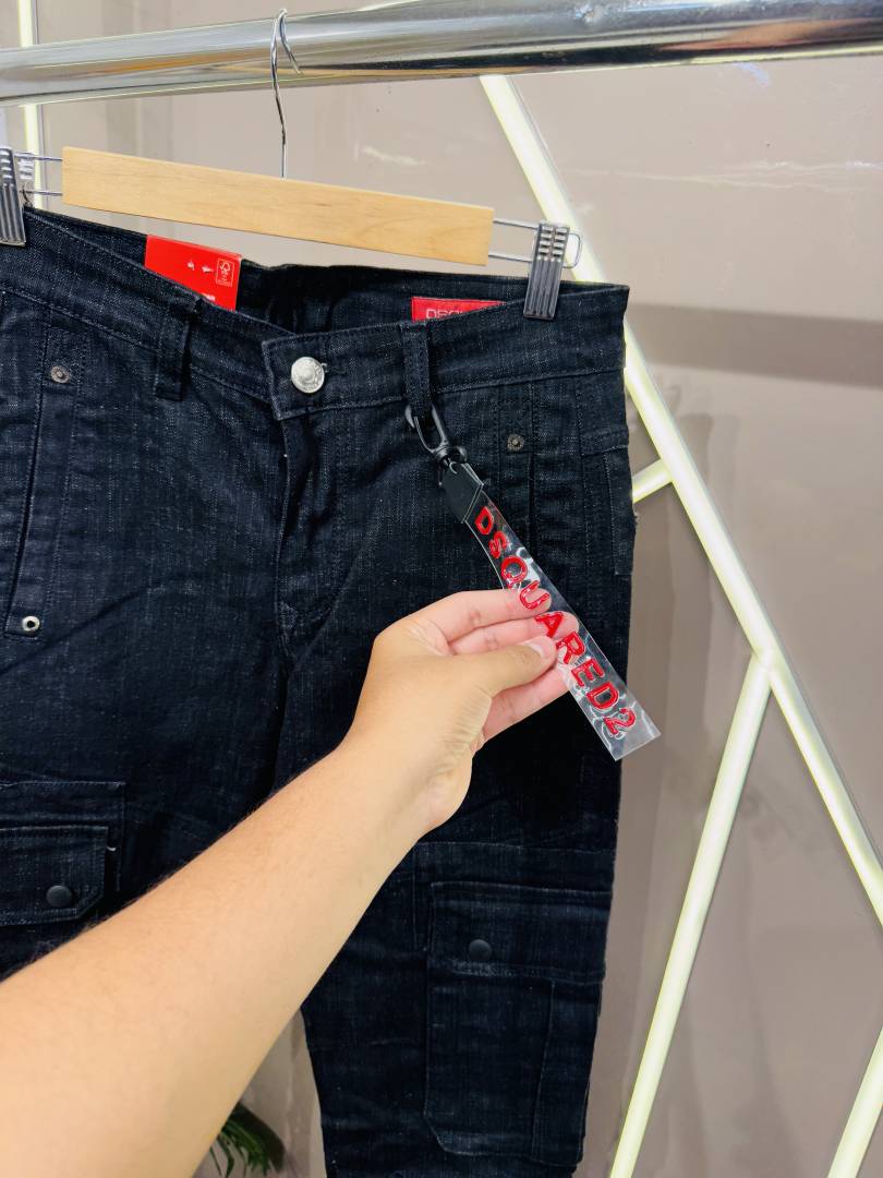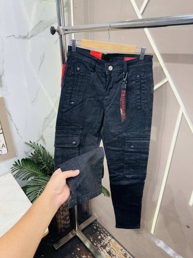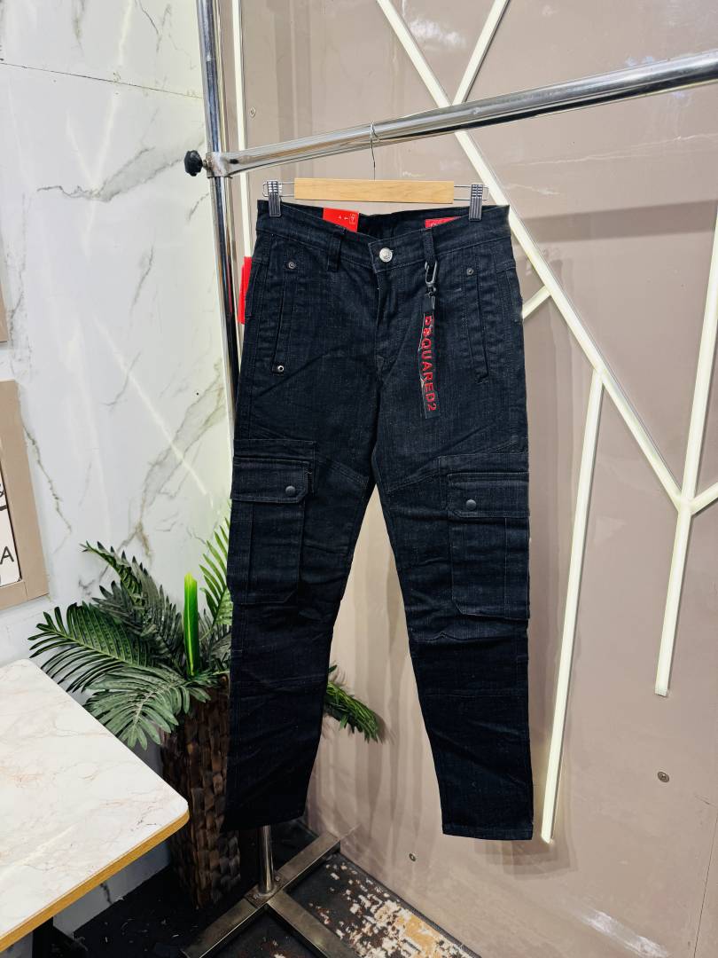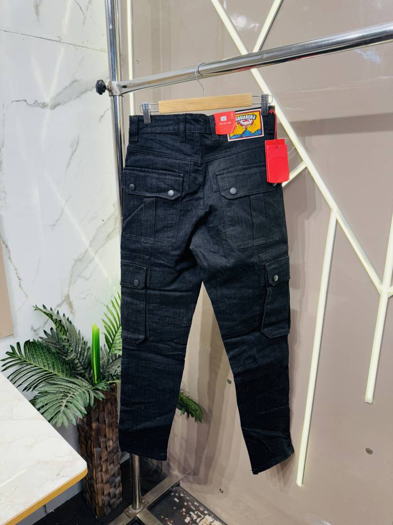 DSQUARED IMPORTED JADE BLACK DENIM FABRIC CARGO STYLE JEANS