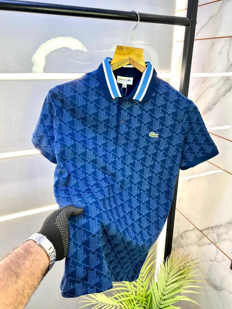 Lacost e Blue Monogram Polo Premium Collar Neck T-shirt F3184-BU