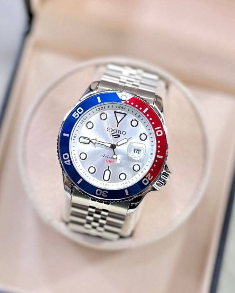 SEIKO GMT AUTOMATIC Red and blue silver chain belt