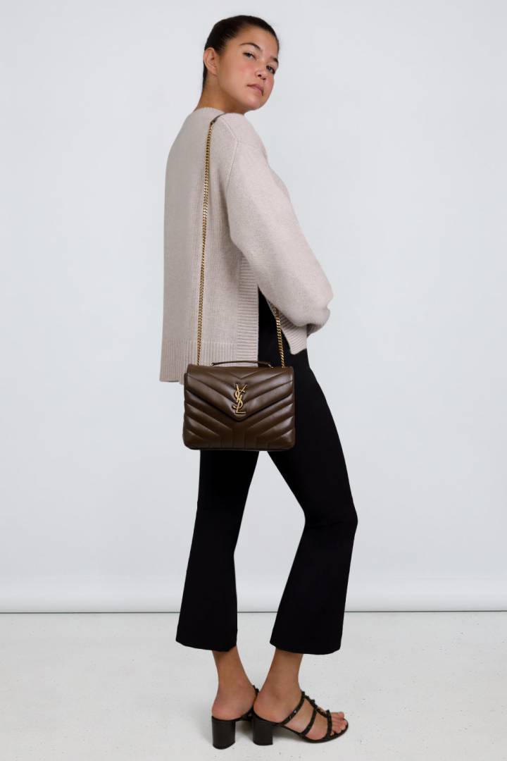YSL Saint Laurent Loulou Quilted Soft Leather Shoulder Bag Chain Strap With OG Box Dust Cover Y8802 Coffee Gold